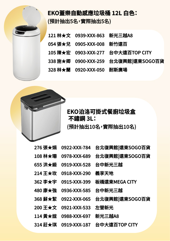 中獎者請持中獎者本人之證件與本公司發送之中獎通知簡訊,至任一百貨公司專櫃領取獎項,