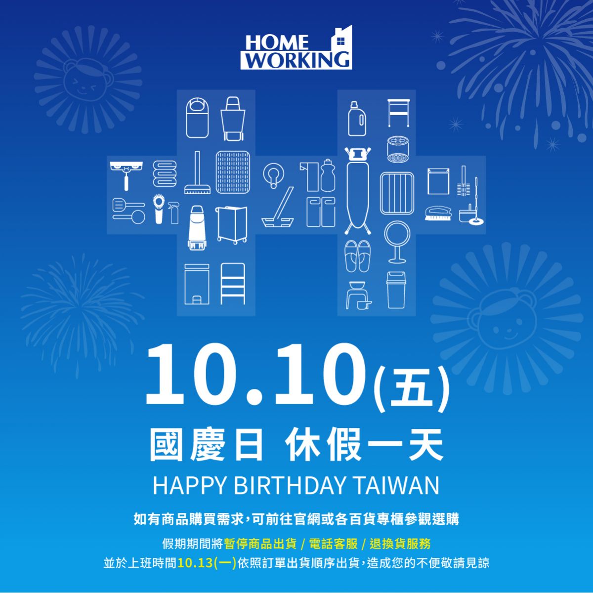 慶祝雙十國慶日,10/10物流暫停客服及出貨