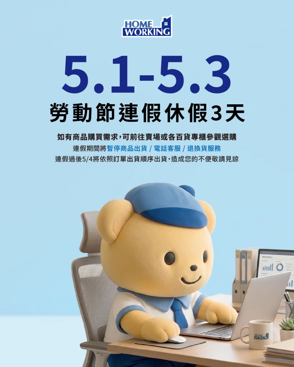 Home Working 將於連假期間 客服與物流暫停服務。